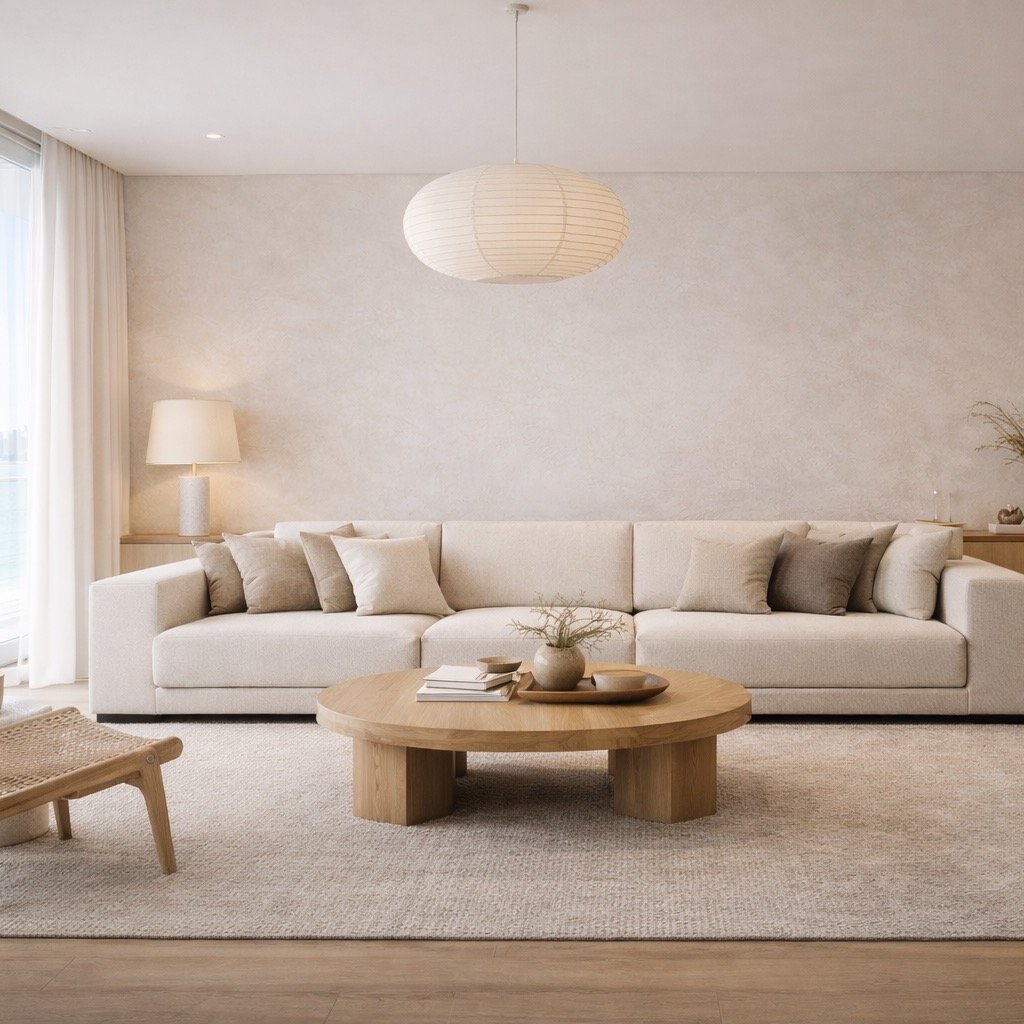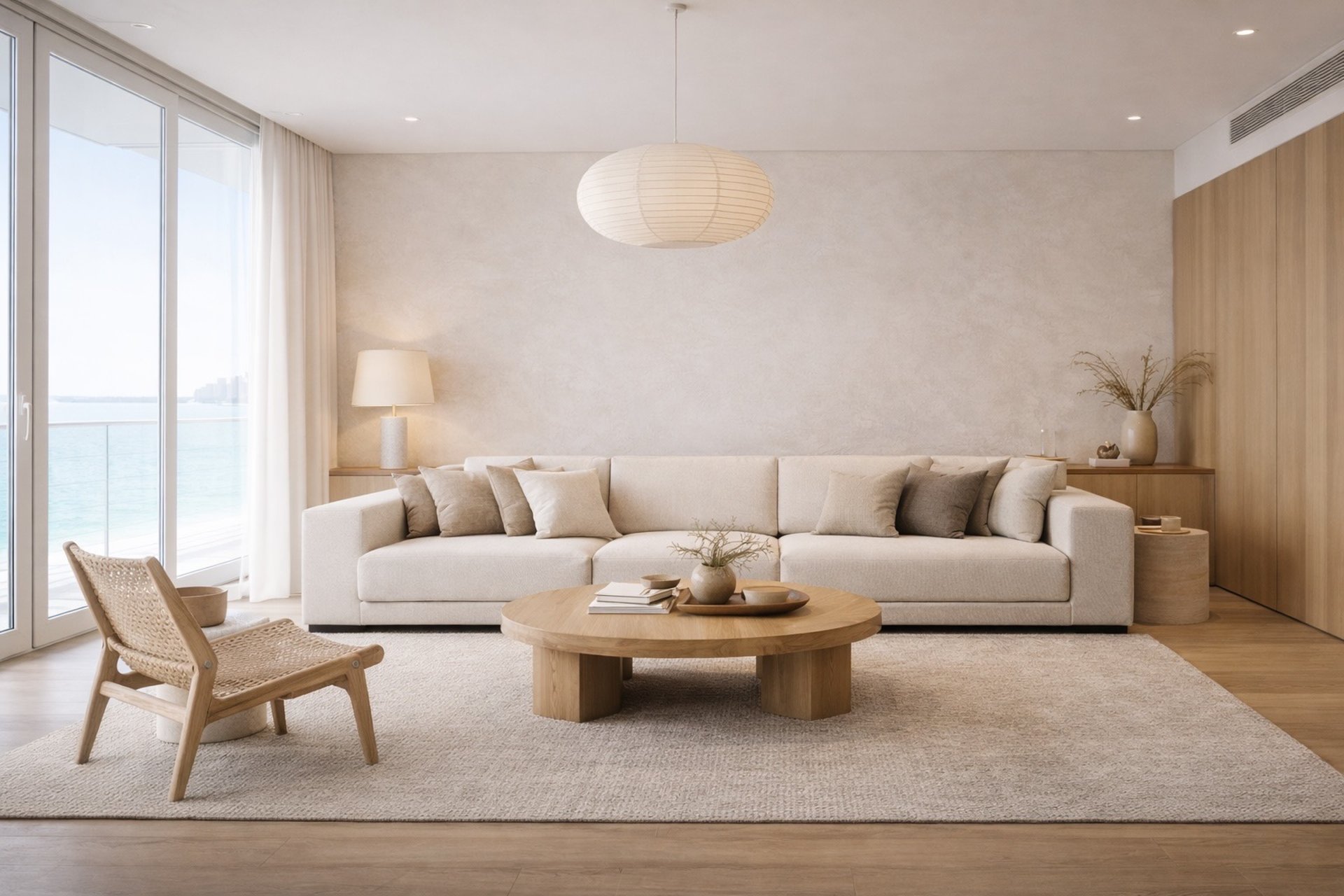 A refined coastal language with soft light, pale textures, and quiet luxury—designed for Dubai’s waterfront living.