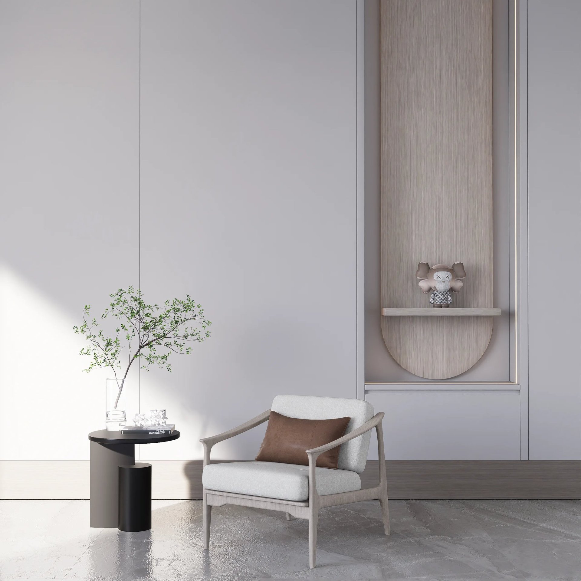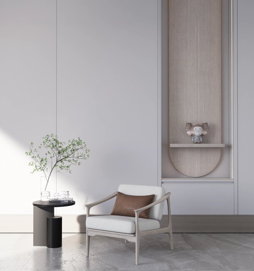 This direction is best implemented through timber veneers, limewashed walls, textured fabrics, and warm neutral palettes—sand, oatmeal, soft taupe, and muted clay tones. Flooring, upholstery, and wall finishes are selected to absorb light gently rather than reflect it sharply. The focus shifts from contrast to continuity, allowing spaces to feel cohesive and lived-in.